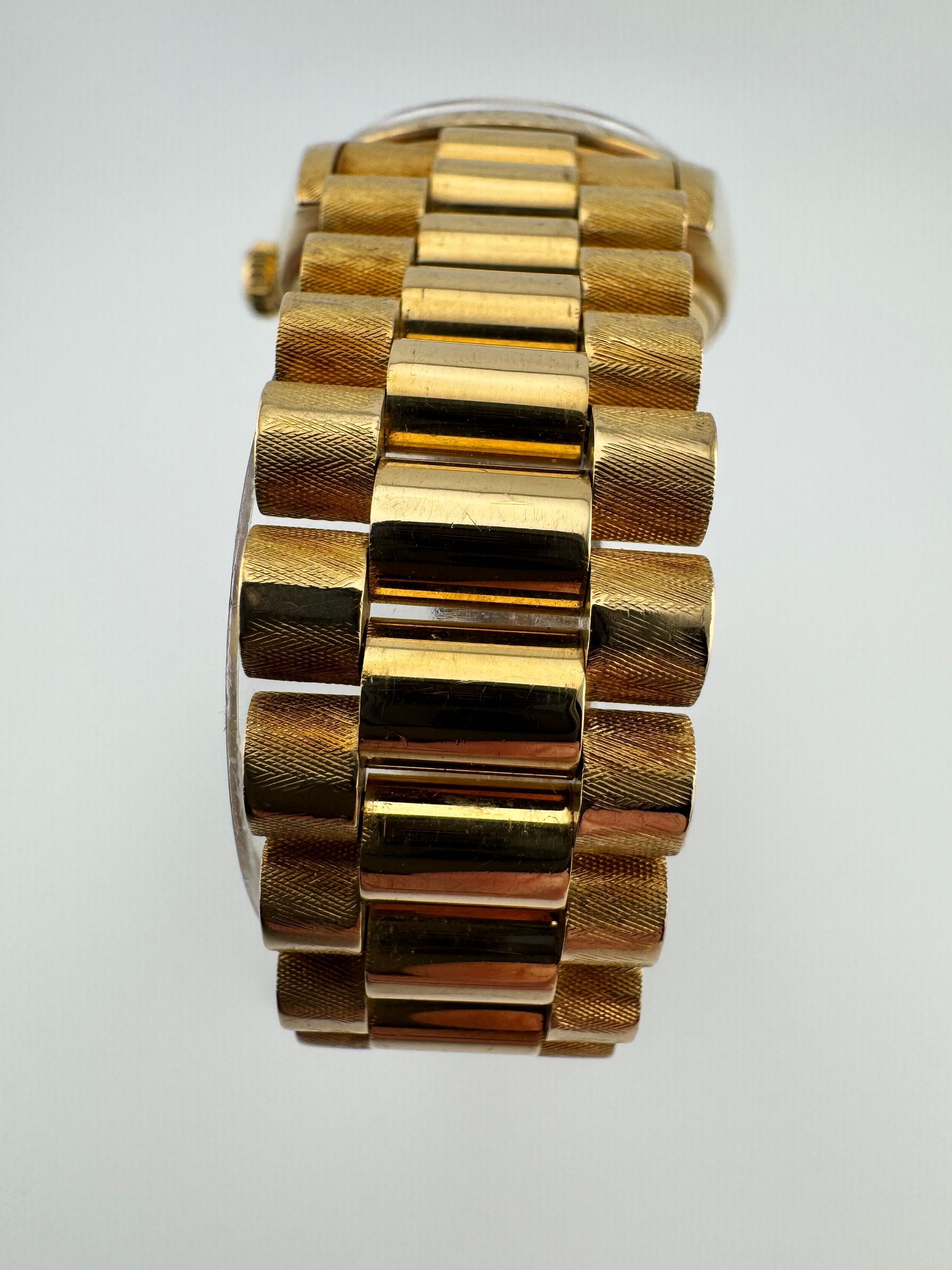 The Rolex Day-Date 18038, produced throughout the late 1970s and 1980s, is one of the most iconic references in Rolex’s history. Crafted exclusively in 18k yellow gold, it embodies the prestige of the “President’s Watch,” long associated with leaders, visionaries, and influential figures.